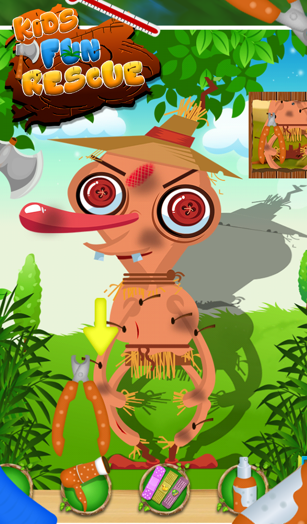 Gameimax is coming with new characters which you might have seen in villages. They are lost in outskirts of village search them by urself using map. So Kids are you ready to play with them? Come and heal their injuries using different tools. They are tied up in wooden boxes,come and save them by using hammer. Here you will find lots of entertainment like different effects of cracking woods, and one mini game inside it like fruit crushing.