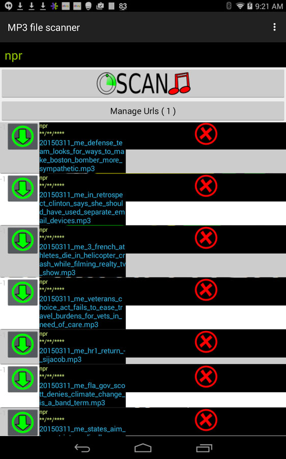 I created this app so I could wake up to the radio shows I listen to. I would usually have to open the webpage that has the mp3s in the browser, long-click them to save link as.. you know the drill, annoying. This app automates the process of downloading mp3s from websites, and lets you do way more than just that. 1) NEW : V5.3: Follow all links on a page, including non mp3 links, (like an mp3 web browser) 2) NEW: V5.3: Enter an rss feed url (for podcasts) and get the list of mp3s 3) NEW V