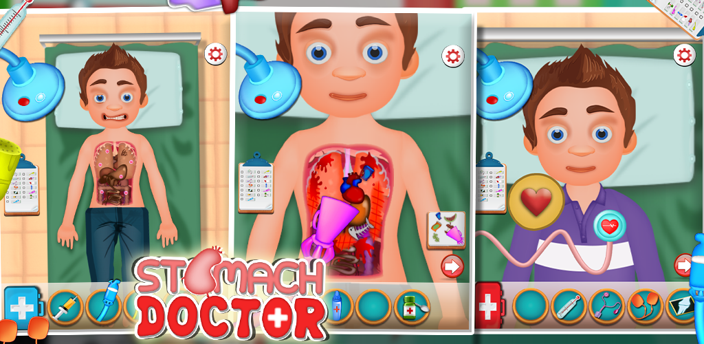 Does your little genius love to eat different junk food and got stomach ache? So lets him play our new game "Stomach Doctor" where your genius tries their hand on becoming stomach doctor Here Kids are having some ache in their stomach. They have to analyze their stomach and if there are signs that they ate something dangerous to their health then do stomach surgery and remove the dangerous substance. First of all they have to do an X-ray image of his stomach and locate the dangerous item, and